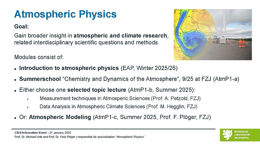 There is a close cooperation with the Institute of Energy and Climate Research, Sections IEK-7 Stratosphere and IEK-8 Troposphere, of the Research Center FZ Jülich.